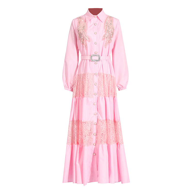 Socialite Elegant Dress Summer Collared Embroidery Water Soluble Floral Patchwork Waist Slimming Maxi Dress for Women | L / White | $153.00