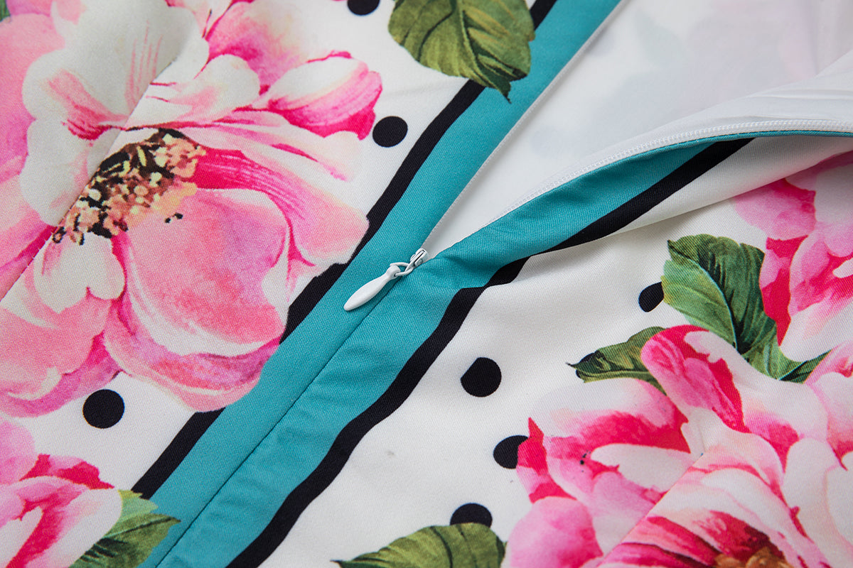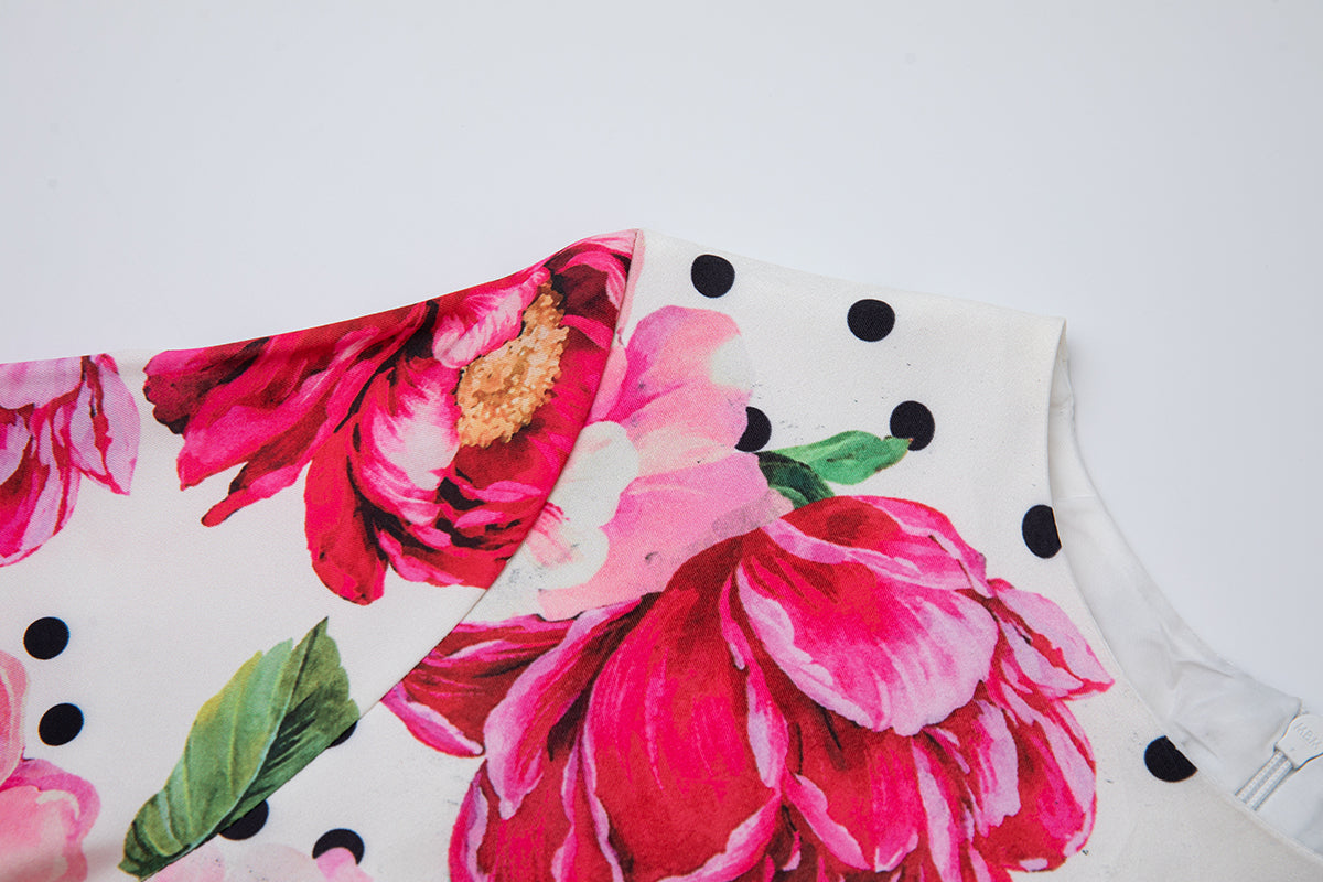 Summer Printed Fitted Round Neck High Waisted Dress With Mid Length A Line Dress | S / Red | $75.00